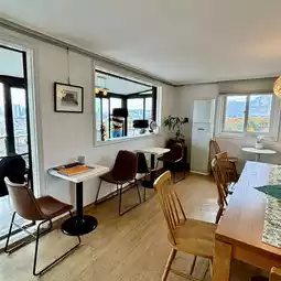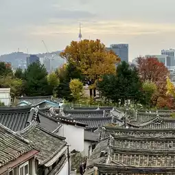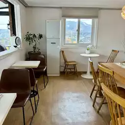 11-minute walk from Exit 2 of Anguk Station on Subway Line 3. A cafe where you can enjoy the traditional Korean scenery. Located in Bukchon Hanok Village, you can see the beautiful roofs of the Hanok houses and the picturesque townscape.