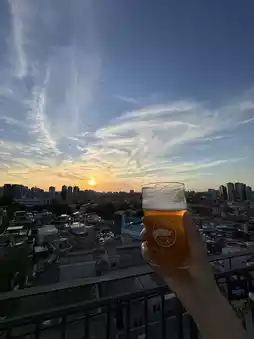 I went to the rooftop and wondered if there was a good seat? I searched for it, but there were more than 100 seats on the large site. I got the best seat at the front where I could see the sunset! There were many couples sitting on the sofa seats in the front. You can also see Namsan Tower from this rooftop, and it's a 360-degree view of Seoul! The lights are beautiful even after the sun goes down, and I enjoyed the view for a long time even though I only had one beer! The large pizza also looked very delicious... 🍕 Please go and check it out! 📍NOOP 1-206 Yongsan-dong 2-ga, Yongsan-gu, Seoul Special City #Korea Travel Information #Asia Travel Records #Overseas Travel Records #Korean Cafe #Korean Gourmet #Korean Cafe Tour #Liberation Village #0 Yen Trip January 2025