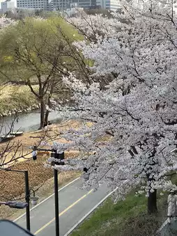 Yangjaecheon is a river that flows through the southern part of Seoul. It is a popular destination for walking, cycling, or relaxing in the beautiful natural surroundings. Especially in the spring, the area is full of vibrant flowers and lush greenery. The park offers stunning and refreshing views, with trees and plants growing abundantly. Along the riverside paths, various flowers such as cherry blossoms and peonies bloom, adding to the beauty with their fragrance and the cool breeze from the river. This makes it an ideal place for nature walks and photography.