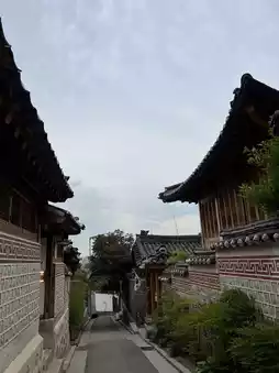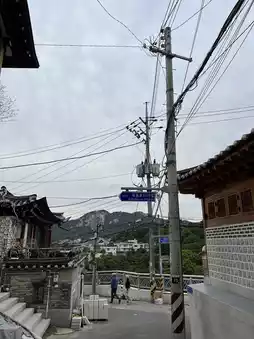Bukchon Village in Korea is a village that features traditional Korean houses from the past. However, this area is still inhabited by people, so when visiting, it's important to keep noise levels down to avoid disturbing the residents. Visitors often wear Hanbok, stroll around, and take lots of photos. This village is also close to Gyeongbokgung Palace, making it easy to visit both in one trip. As you walk around, you'll see stunning city views from high vantage points surrounded by trees. The scenery from this village is truly breathtaking and exceeds expectations.