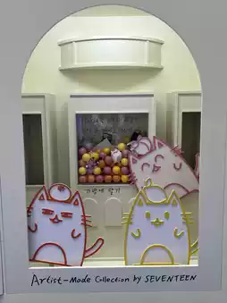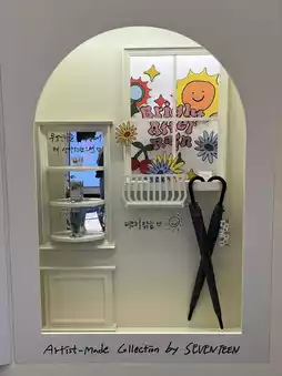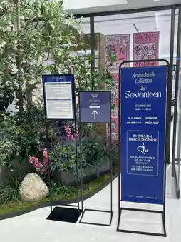 This is a pop-up store for the idol group Seventeen, which is being held at Shinsegae Department Store. Here, you can find items that the members of the group have participated in designing. Each item is unique to each member and everything is super cute. There are dolls, umbrellas, keychains, phone cases, and even a perfume set that you can mix yourself. Besides the items for sale, the display is also very cute, with different themed zones. Even if you're not a fan, you can still drop by to take some adorable photos.