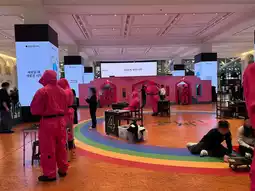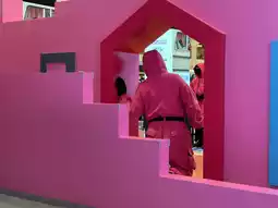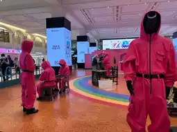 The world of Squid Game spreads out in the lobby on the first floor! I was moved as soon as I saw the pink color 🥹