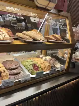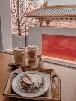 There are many items to choose from. I chose chocolate biscuits. The texture is very dense. The drinks are also delicious. The coffee is not bitter.