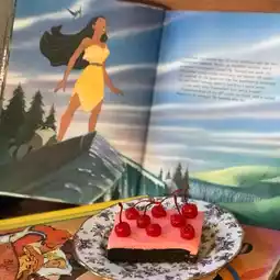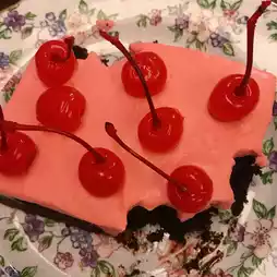 Cherry Brownie 🍒 (체리브라우니) 8,900 won, featuring pink cream and lots of cherries.