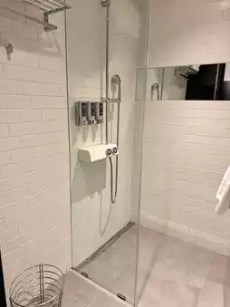The washbasin is located across from the shower room, and the washbasin is open, so it is good for lightly washing your hands or putting on makeup.