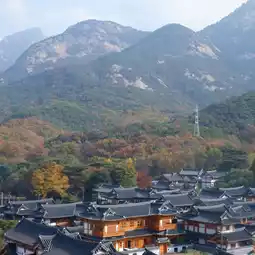 #Solo travel plan This tourist attraction in Seoul, South Korea is built as an ancient Korean village, built for Korean people to live in. The atmosphere is very good. You can walk around all day and not get bored. The scenery is beautiful. There are mountains in the background. In addition to the village, another highlight that can be considered a landmark is the 1in1jan Cafe. The coffee is delicious. There are also snacks. Most importantly, there is a viewpoint of the village on the rooftop of the cafe.