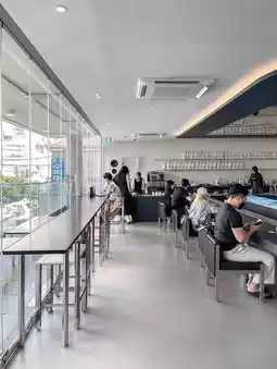 Instead of playing music, the shop chooses gentle sounds like the sound of waves for a comfortable feeling & mind relaxation. Leon chooses a piece of cool lemon-flavored ice cream, brought to the table so that it does not melt for a while because it is kept on a super cold ice plate.