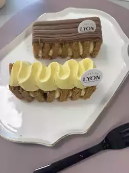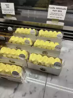 The millefeuille here is made up of overlapping pies like dominoes, so it's very easy to eat!