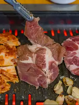 The price is not expensive. There are pork, pork neck, dakgalbi, sliced beef and chicken. At first, it will be served to you