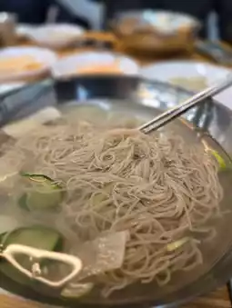 While exploring Gangnam during your Seoul trip, ⭐️Jinpyeongmyeonok⭐️ is a great place to stop by for lunch. They serve trendy Pyeongyang naengmyeon, along with seafood platters and Pyeongyang-style dumplings. While the Pyeongyang naengmyeon is a bit pricey, it's a satisfying meal. This relatively new naengmyeon restaurant is popular with both office workers and tourists alike.