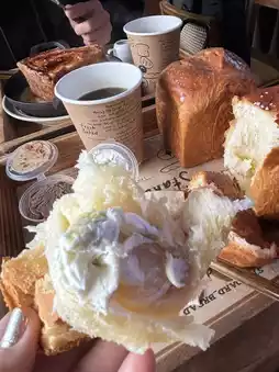 This is a bakery that mainly sells bread. You can choose your favorite bread with your favorite spread. The French toast also looked delicious, so two people shared it.