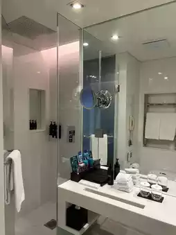 The hotel has six restaurants, a spa, an indoor pool, and a fitness center.