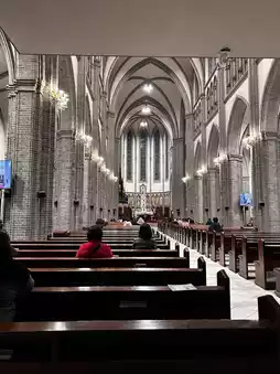 Myeongdong Cathedral is a quiet sanctuary located in the middle of Seoul's bustling downtown. I visited on December 24th for Christmas Mass, and the sight of the 45m tall bell tower turning golden as the sun began to set was particularly impressive. As I entered the cathedral, the soft light shining through the stained glass and the grandeur of the arched ceiling took my breath away. I could feel the weight of history as I looked at the remains of the martyrs enshrined in the underground sanctuary.