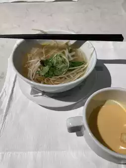 There were also made-to-order dishes like omelets, fried eggs, pho, and udon.