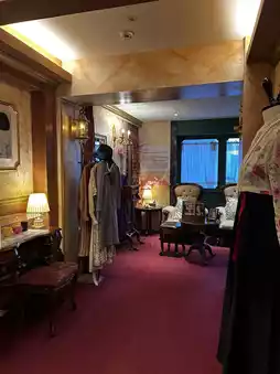 Hidden spot: Retro bar space in the central hall on the first floor → Photogenic spot with antique lighting and furniture