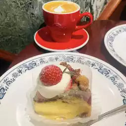 When you enter the store, your eyes will be drawn to the cakes, but you have to find a seat first.