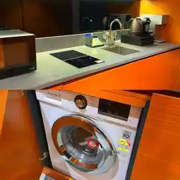 The room is large, clean and tidy, with simple decoration. It has a small kitchen with a microwave, kitchenware, dishes, washing machine and coffee machine, making it very convenient to cook. Good sound insulation, the toilet is separated into dry and wet areas!
