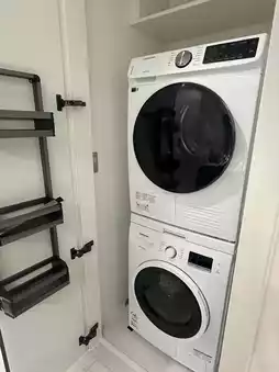 The room is fully equipped with a washing machine, dryer, oven, wine cabinet and clothes sterilizer. Despite the number of cabinets, only the toilet has a mirror. Also has 2 balconies.