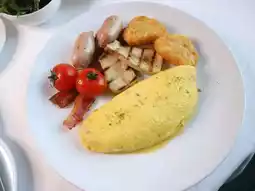 I used the in-room dining service for breakfast, and it was well-prepared with bread, omelets, cereal, juice, and fruit.