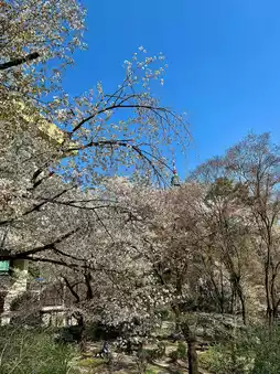 I went up the mountain at around 3:00 p.m., just in time for sunset. The change from dusk to night view was super beautiful. It is recommended to arrive at around 4 or 5 pm so that you can take pictures of the cherry blossoms, the sunset, and the night view of the city after the lights are turned on.
