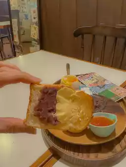 you can eat it with various side dishes such as bean paste, butter, half-boiled eggs, and whipped cream,