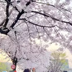 Who in the family understands! As soon as you come out of Exit 2/3 of Yeouinaru, it's like falling into a cherry blossom wonderland. The cherry blossoms along the whole road are so bright that many branches are drooping down, directly blocking the way for pedestrians, but it's not annoying at all. You just want to dive into this pink romance!