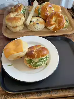 ✔️The bagels are chewy and the combinations are really delicious. Personally, I liked the sweet potato cheddar cheese bagel the most.