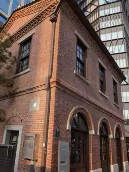The eye-catching red brick cafe building is a national heritage site!