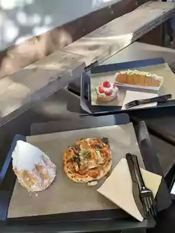 There are breads with chocolate, mashed potatoes, cheese, and sandwiches with vegetables and ham, as well as soups🥣