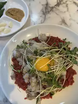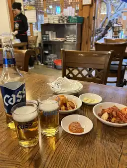 Recommended point: If you order Yukhoe, you will also get a small soup, which is nice. The beer is ice-cold 🍺 and the octopus is crunchy and fresh, so it's recommended for those who are trying Yukhoe for the first time. Eating it with seaweed changes the taste.