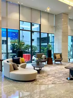 is in a great location in the Seocho District. It's about 100m to the subway station, making it easy to get to Myeongdong and Dongdaemun. There's also a convenience store downstairs, so you can buy snacks at any time of night. It is recommended to take a taxi to Gangnam Garosu-gil and COEX Mall. It's not expensive and only takes a few minutes. The front desk can help you call a taxi, and using Uber is also quite convenient. The hotel service is impeccable, and the staff are very friendly and fluent in English. They will greet you proactively when they see you at the hotel. The rooms are very clean and tidy, and the beds are especially comfortable. The rooms are fully equipped with TVs, refrigerators, hair dryers, and free Wi-Fi with a fast connection, so you can browse social media and watch shows without any issues. There is an outdoor infinity pool hidden on the top floor. It is not very big, but you can overlook the entire Gangnam skyline during the day. When the neon lights come on at night, it's a different feeling. The lounge chairs by the pool are a bit popular, so you can go earlier. There are also bath towels and a beverage cart. It's really great to relax and watch the night view after swimming. There is also a gym, which is open 24 hours. There are fewer people than at the pool, so the experience is not bad.