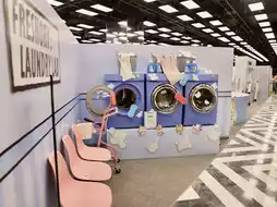 The entire pop-up installation is like a dream laundry, combined with BTOB’s fresh image to create a cute and healing space. The light blue and white bubble-like tones are matched with the laundry basket, clothing wall, and interactive small designs, which make people melt in a second.