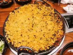 And when you are almost finished eating, you can inform the staff. They will put the remaining squid in a bowl and stir-fry it with rice and crush it flat. They will sprinkle shrimp eggs all over the pan. The rice will be crunchy and delicious.