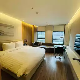 The room was spacious and clean, completely unlike the cramped feeling of typical city hotels. The view from the window showcased the beautiful park scenery nearby. The hotel's location is fantastic—just a few minutes' walk to the subway station, with convenience stores nearby, making it very convenient for daily needs. If you're looking for a hotel close to the airport for a night before heading home, this is absolutely the perfect choice!