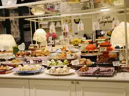 After waiting in line for a while, you can help yourself to your favorite scones and cakes.
