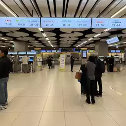 Each airline has its own counter, which is color-coded for easy identification ♪