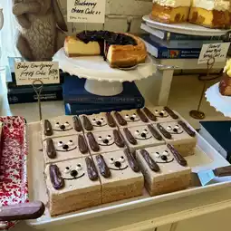 I ordered a scone, a cake with a dog design, and a cafe latte!