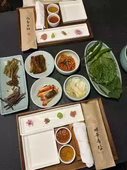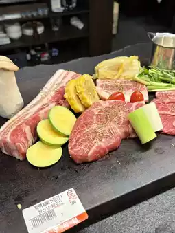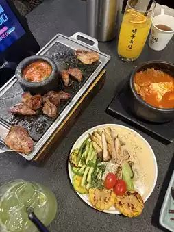 It comes with a set of various cuts of beef and pork, vegetables, sundubu jjigae, and side dishes, so it's a great deal!! !