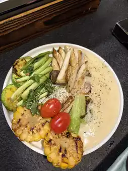 After the vegetables were grilled, the staff arranged them with white sauce, which was also delicious😋💕