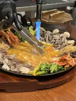 The meat was neatly arranged, grilled, then the vegetables were arranged, and then the egg came out!🤗 Apparently, the thing on top is like a buckwheat crepe.