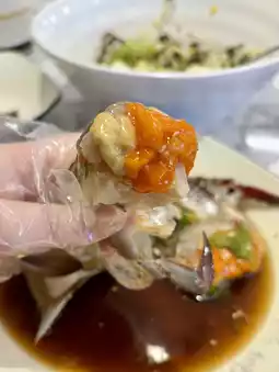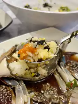 A bright orange crab was brought to me, and I couldn't help but stare at its beauty. One bite and the sweetness of the crab and the deep flavor of the secret sauce were exquisite, with a slight hint of fruit and herbal aroma.