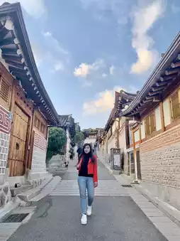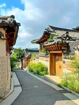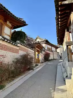 The morning in Bukchon Hanok Village carries a serene charm of bygone days. The stone-paved alleys are quiet, and the traditional Korean houses are arranged harmoniously. Every window and wooden door seems to hold a story. From a higher vantage point, the entire village is surrounded by modern skyscrapers, yet it maintains its own rhythm. As sunlight slants across the wooden tiles, casting shifting shadows, I feel as though I glimpse a familiar yet unexperienced past.