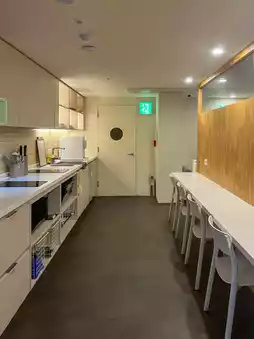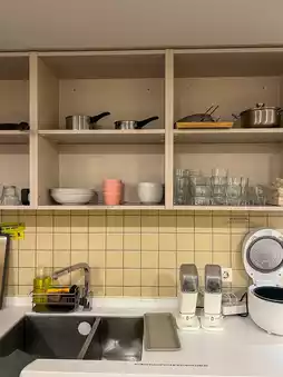 The shared space has a laundry room and a kitchen, so it's nice to feel like you're living in a dormitory!