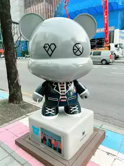 On the sidewalk along the main street, you'll find dolls of idol groups that built K-pop's popularity, including BTS, TVXQ, Girls' Generation, SHINee, 2PM, and EXO. Try finding your favorite doll and taking a photo! 🥰