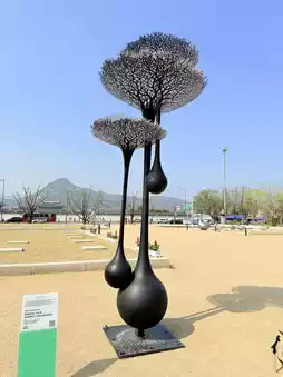 This is Seoul. In this case, it is Uijeongbu City Historical Site Plaza, where you can see sculptures as part of a project called Sculpture City Seoul. So this is an open-air space where you can take a walk and see sculptures, and it is also a good place to take a walk. Since it is a place where you can see art works as a project in Seoul, it would be good for everyone to stop by and see it while traveling in Seoul. Also, there are many other attractions nearby, so if you pass by when you come here, it would be more helpful. I recommend it to everyone.