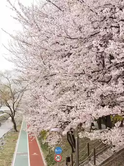 Moreover, there are relatively few tourists here, and it is not crowded or noisy, allowing you to fully enjoy your time alone with the cherry blossoms. Strolling along the Yangjaecheon Trail, you can also enjoy the beautiful scenery of towering Metasequoia trees and cherry blossoms complementing each other, which is full of exotic atmosphere. It is just outside the Yangjae Citizens Forest Station of the subway, and the transportation is very convenient. Bring a picnic blanket and some delicious food, come here to enjoy the cherry blossoms and the pleasant spring time. It is really beautiful, my dears, don’t miss it! #Seoul Sakura