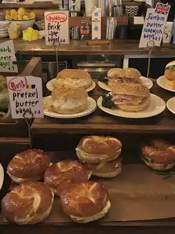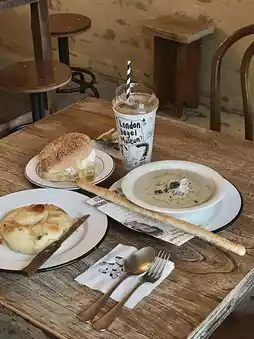The atmosphere of the space itself, the special experience, and the chewy and fantastic bagel taste make this a place I definitely want to visit at least onceㅎㅎ I was reluctant to go early in the morning, so I visited after a vacation nearby to celebrate my upcoming birthday! I couldn't help but be surprised by the bustling entrance even before it opened,, The bagels were delicious, of course, and I hope those who visit the store try the truffle mushroom soup together! The perfect combination🖤