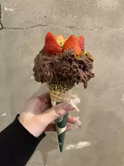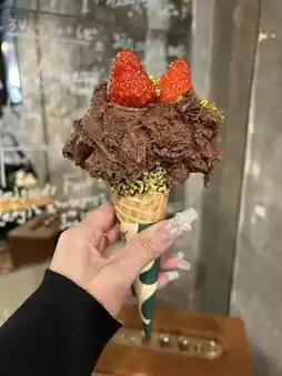 The cherry blossom-flavored gelato is slightly sweet, and the combination with the oil creates a refined taste.❤️