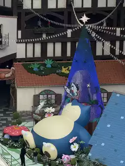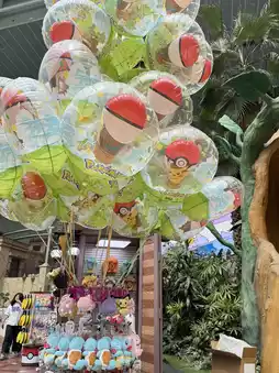 When you look up, you can see Pokeball balloons flying and Pokemon in various places in the park...!