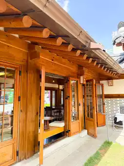 I really like the design of the coffee shop. You can sit in the garden and drink coffee. It's very comfortable.